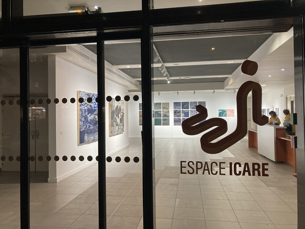 Exposition personnelle, 2023 gravures sur bois imprimées sur papier, 192 X 144 cm Chaque gravure est composée de 12 modules juxtaposés Les matrices sont également exposées